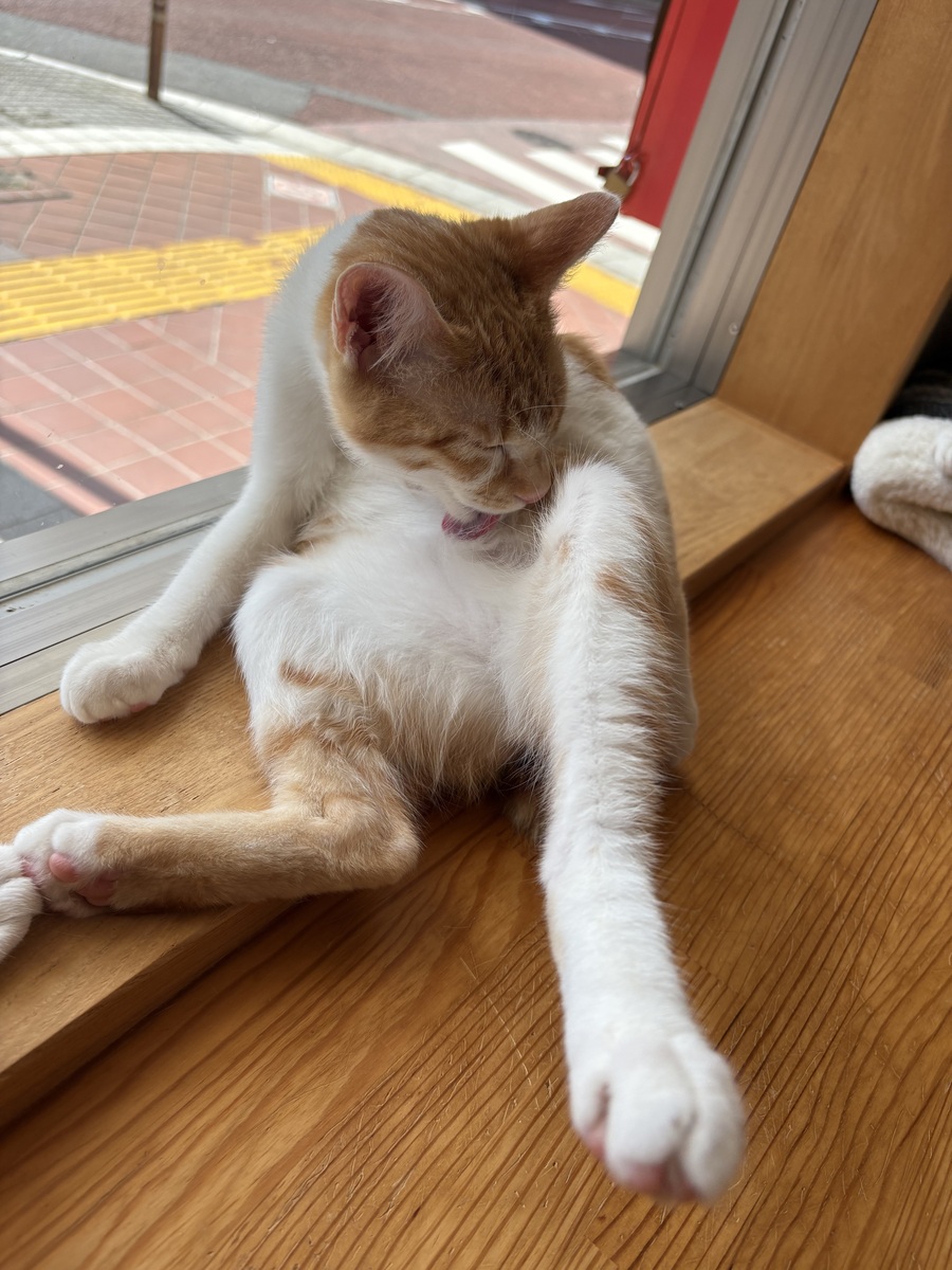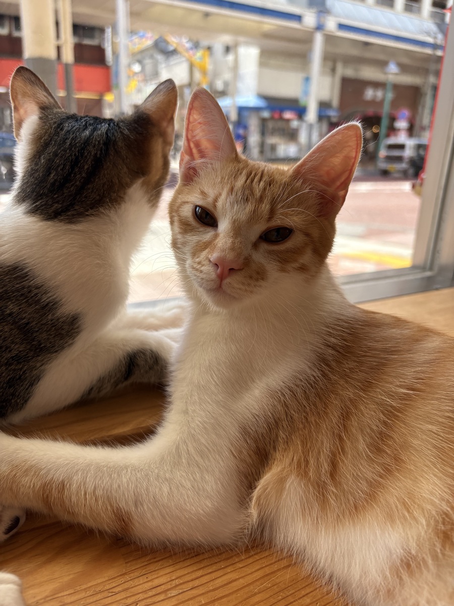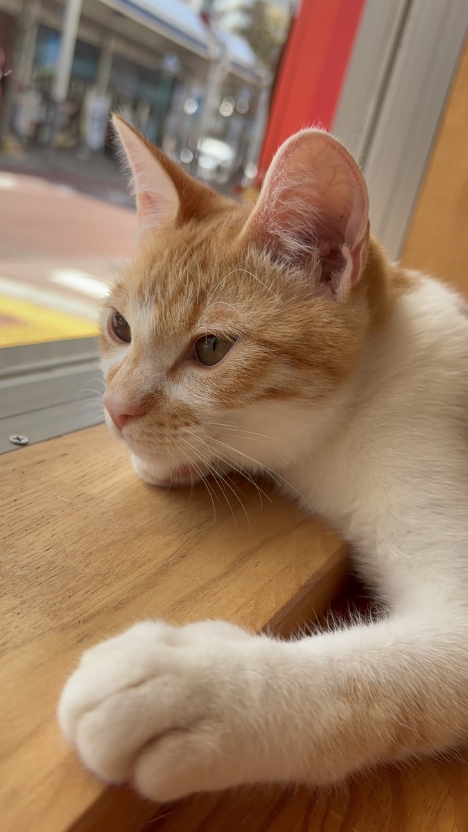 5匹兄弟(姉妹)一緒にカフェにやって来たチータ君😃✨5匹の中でも初日から緊張なし‼️そのまんま‼️人大好き❤余裕なチータ君でした😆