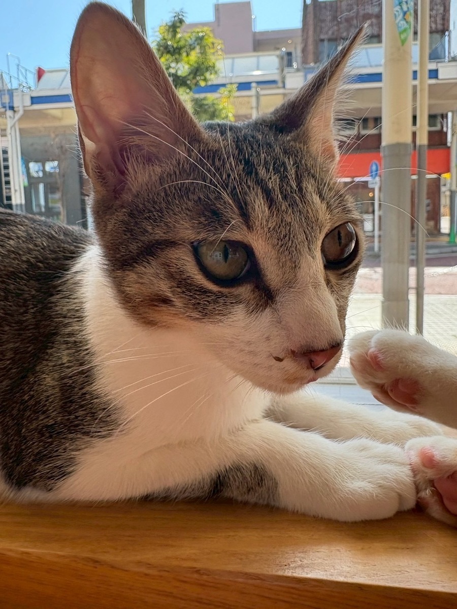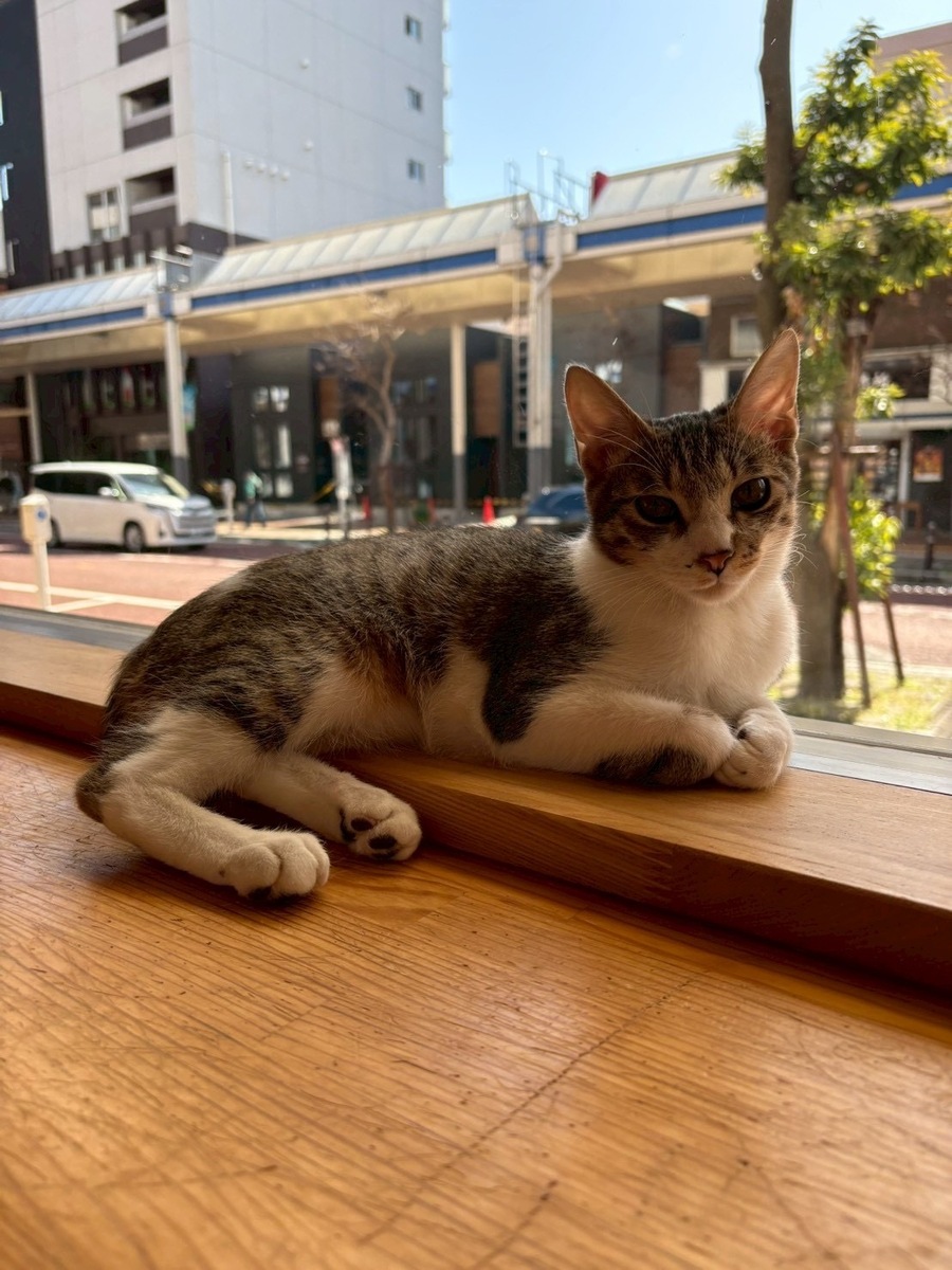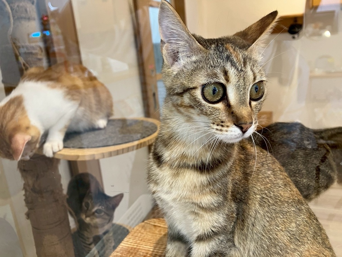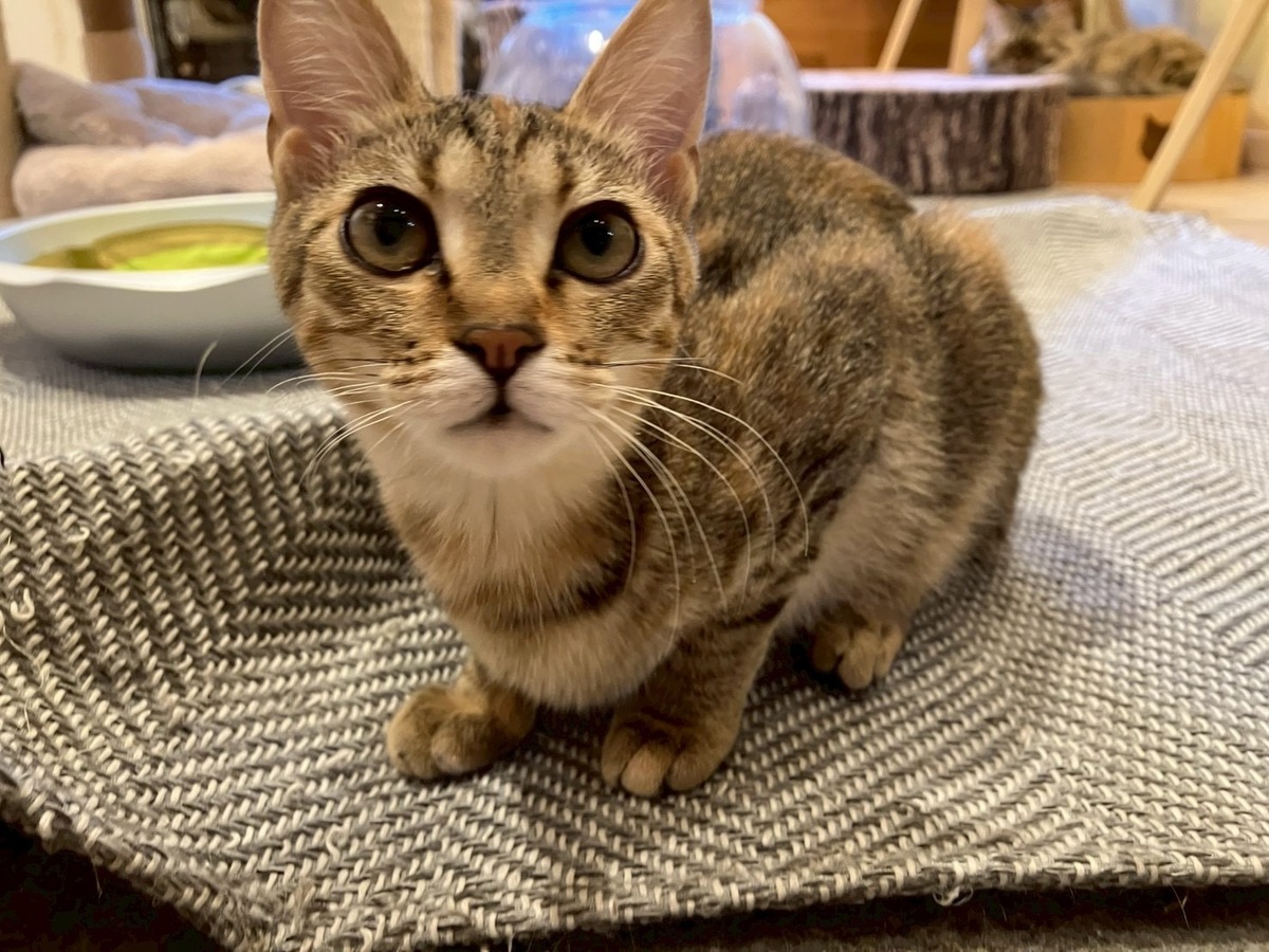 人なれバツグン、お客様のお膝の上に乗ってしまうアイドル猫ちゃん「ジャム」ちゃん🥰1番小さな体の女の子だけど、兄弟達から甘えられるお姉さん的な表情も見せてくれました❣️