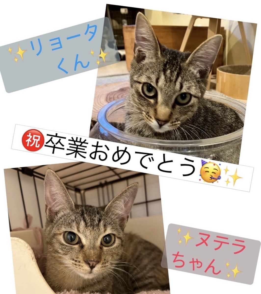 最後までカフェで仲良く過ごしていたリョータ君とヌテラちゃんにも、この度、素敵なご縁があり2匹一緒にカフェを卒業いたしました㊗️✨