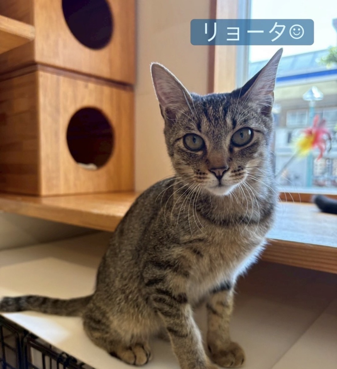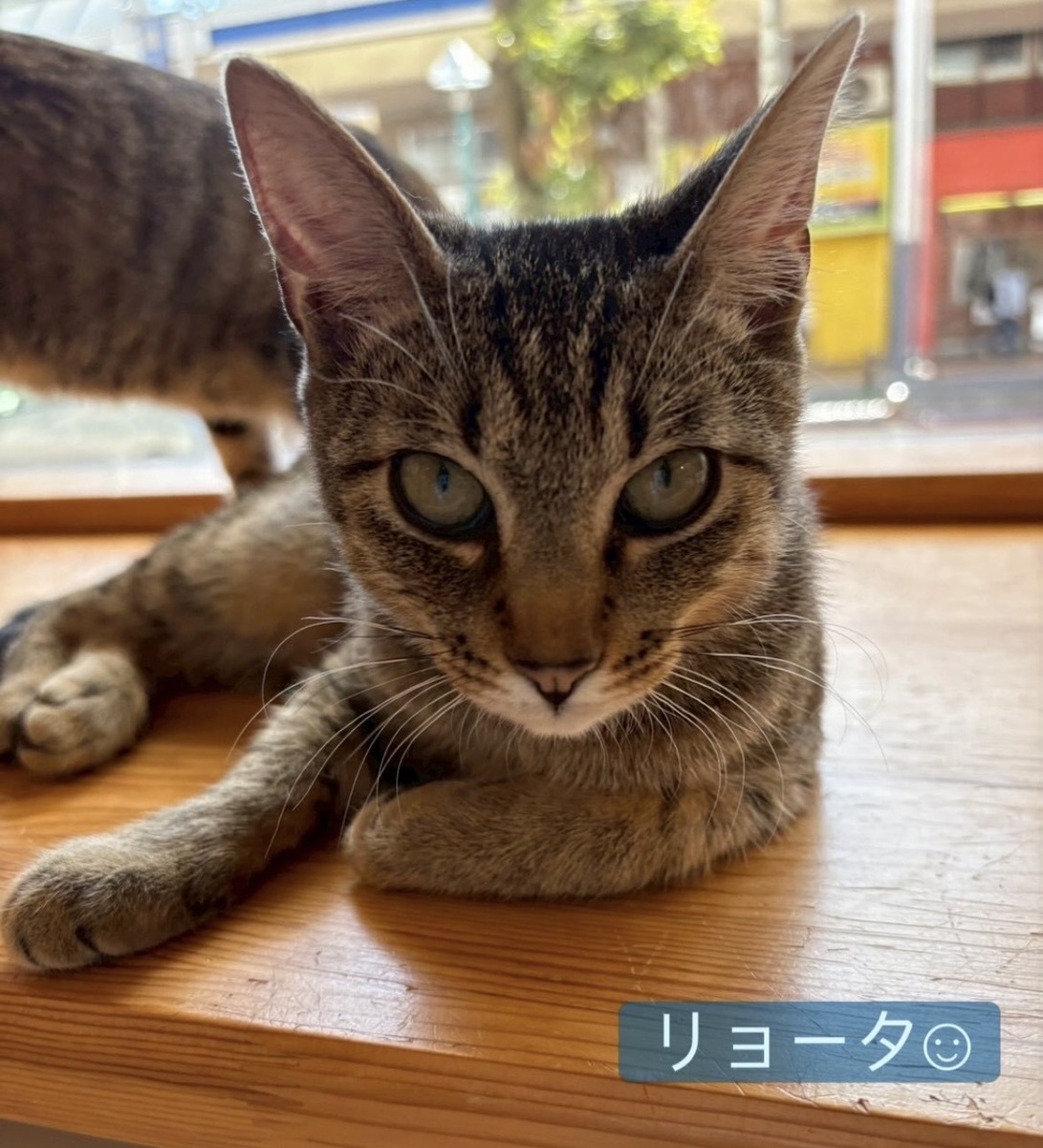 キジトラ柄にアンテナの様なカギしっぽのリョータ君🐈⬛
