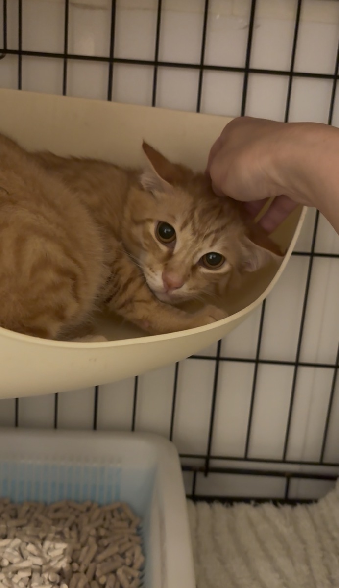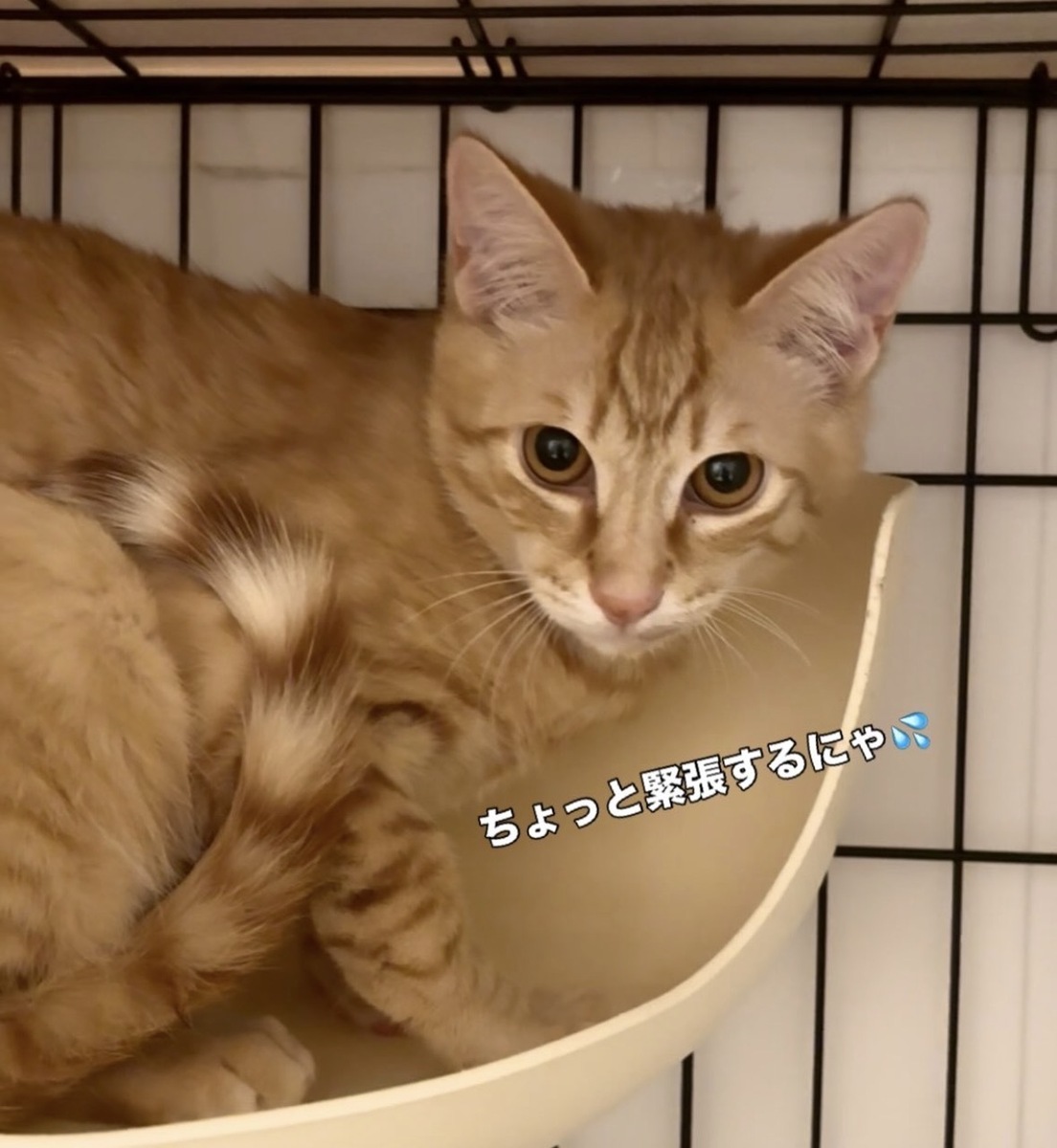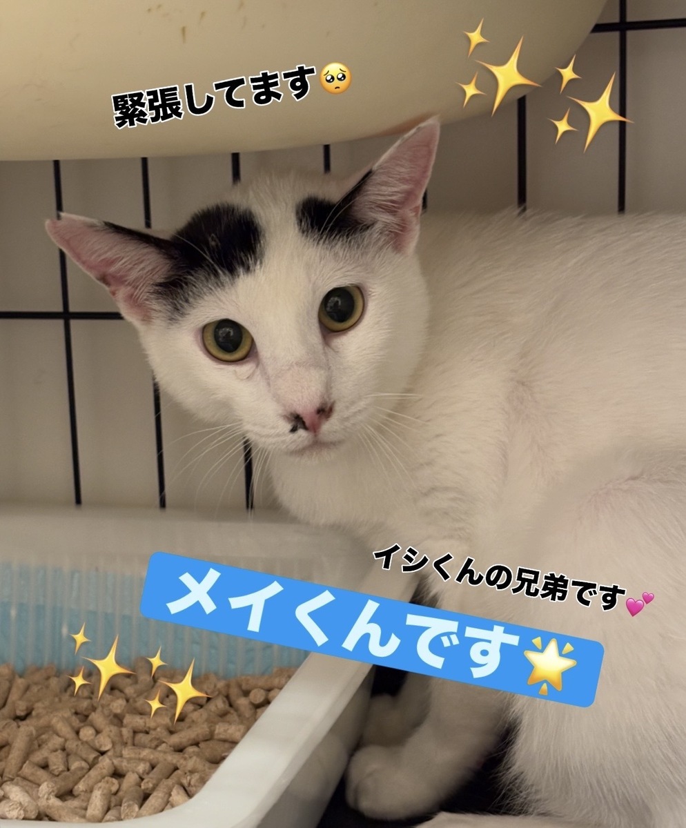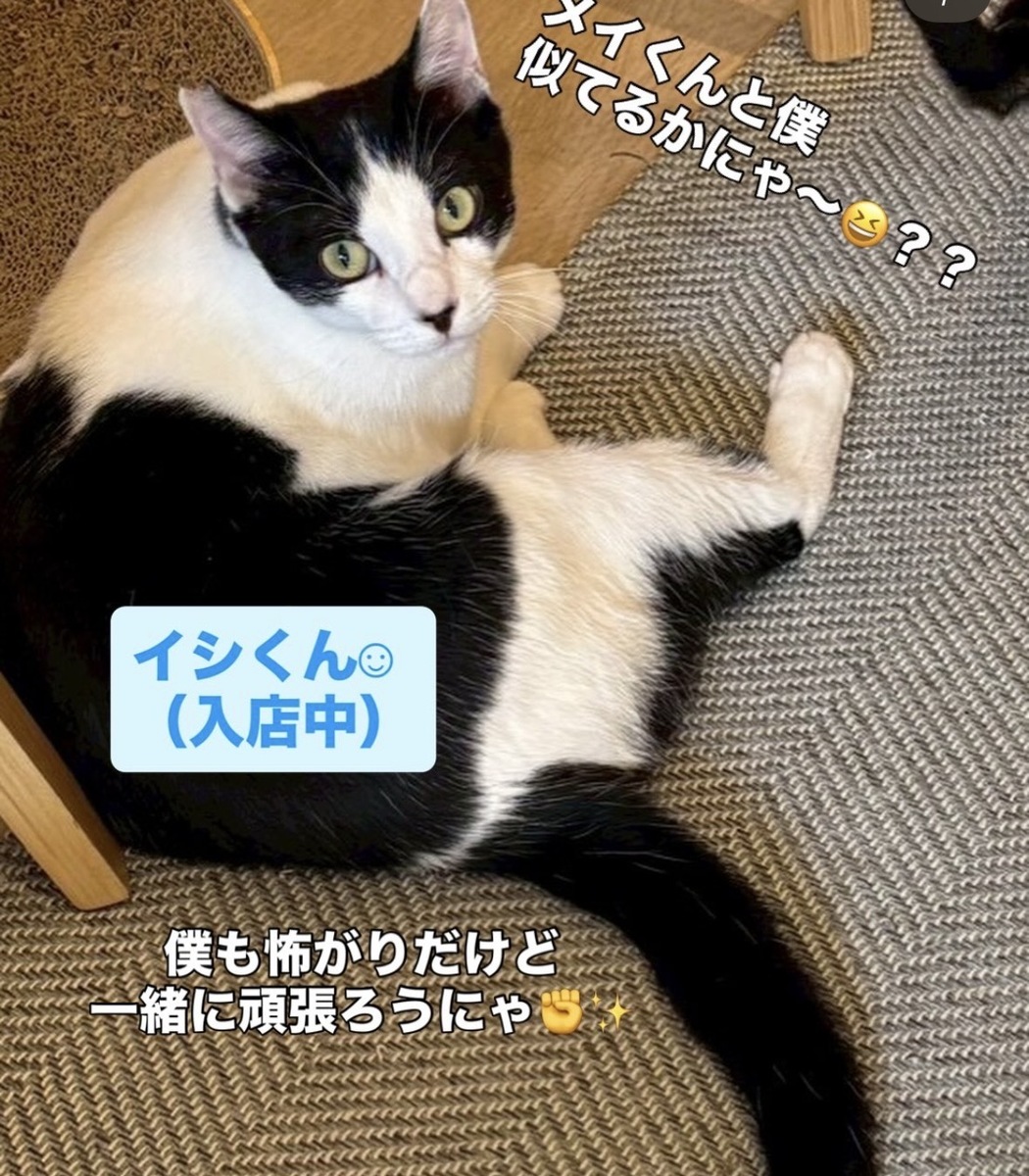 カフェ入店中の「イシくん」の兄弟なんです😃✨すごく怖がりさんなので今は緊張が強いですが、ゆっくり少しづつカフェの環境に慣れてくれればいいなぁと思います🥰